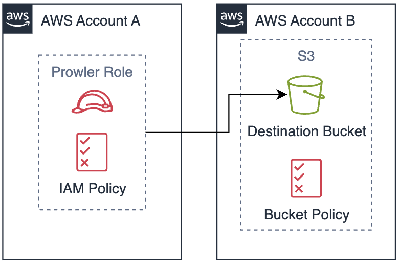<SOURCE ACCOUNT ID> with the AWS account ID that contains the IAM role and <BUCKET NAME> with the destination bucket name. The role name ProwlerScan is the default name when using Prowler’s permissions templates. If using a custom IAM role or different authentication method, replace ProwlerScan with the actual role name.Multi-Account Configuration